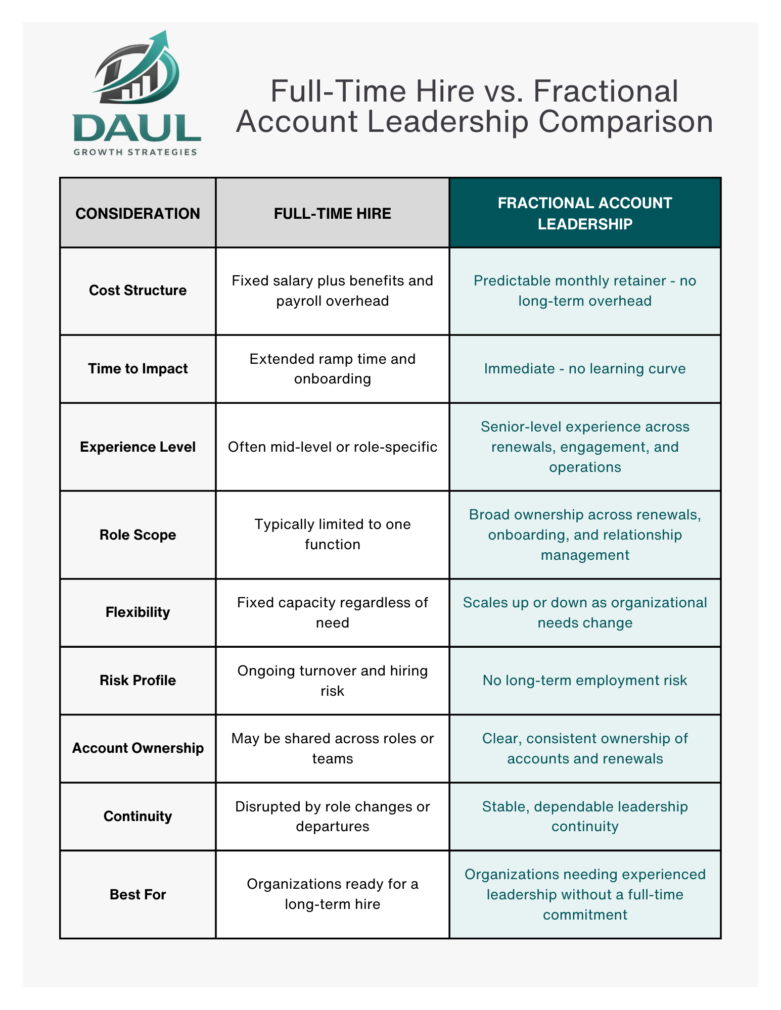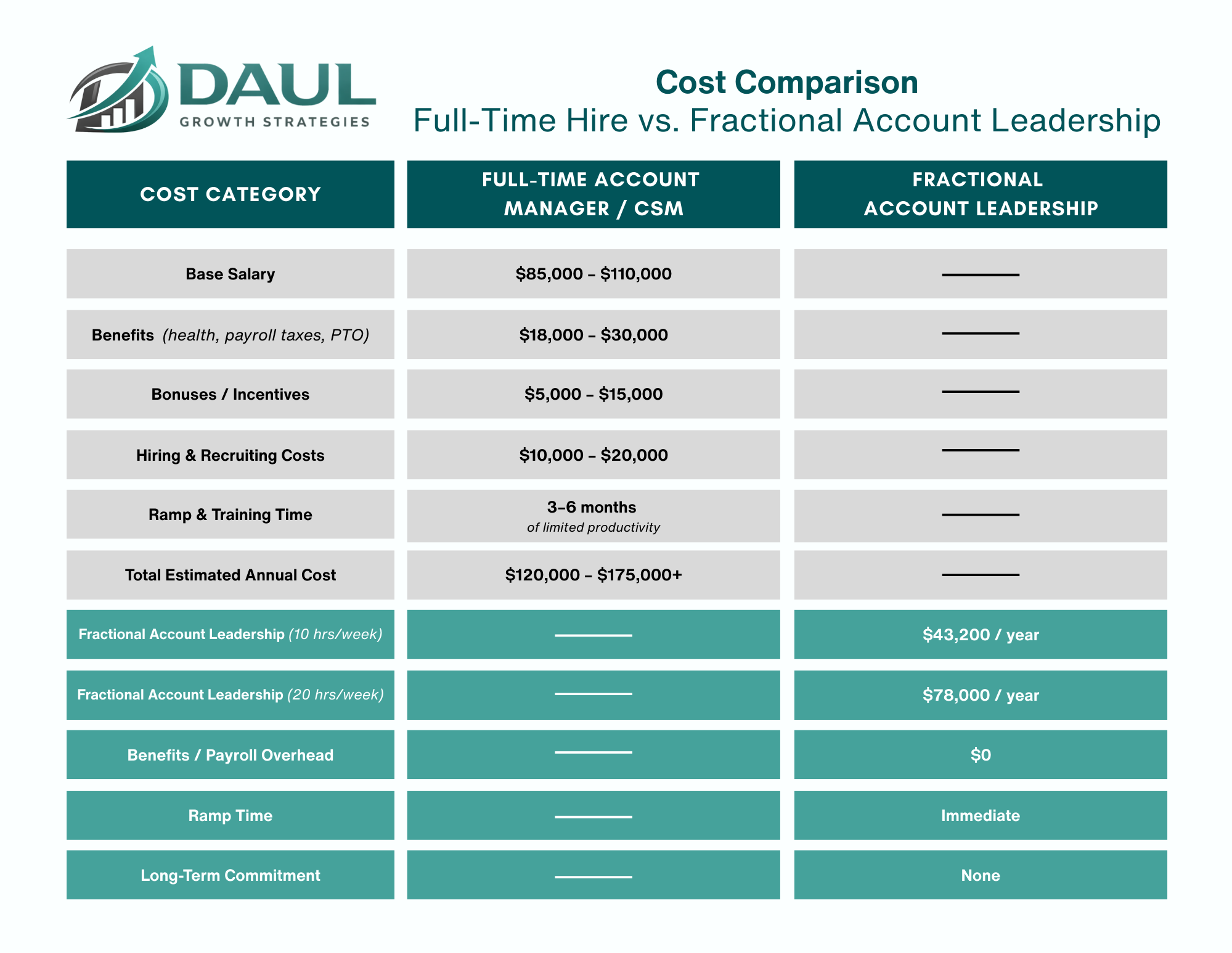 Experienced leadership at a predictable monthly cost - no salary, benefits, or long-term employment obligations.